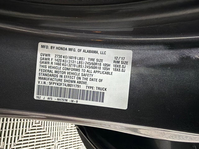 Odometer is 89060 miles below market average! Honda Ridgeline 2018 RTL-E AWD Modern Steel Metallic