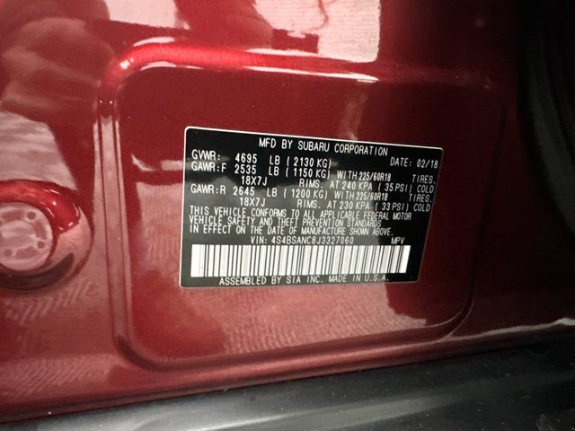 - Wheels: 18" x 7.0" Aluminum Alloy w/Machine Finish -inc: Black, silver aluminum alloy center cap w/Subaru 6 star logo